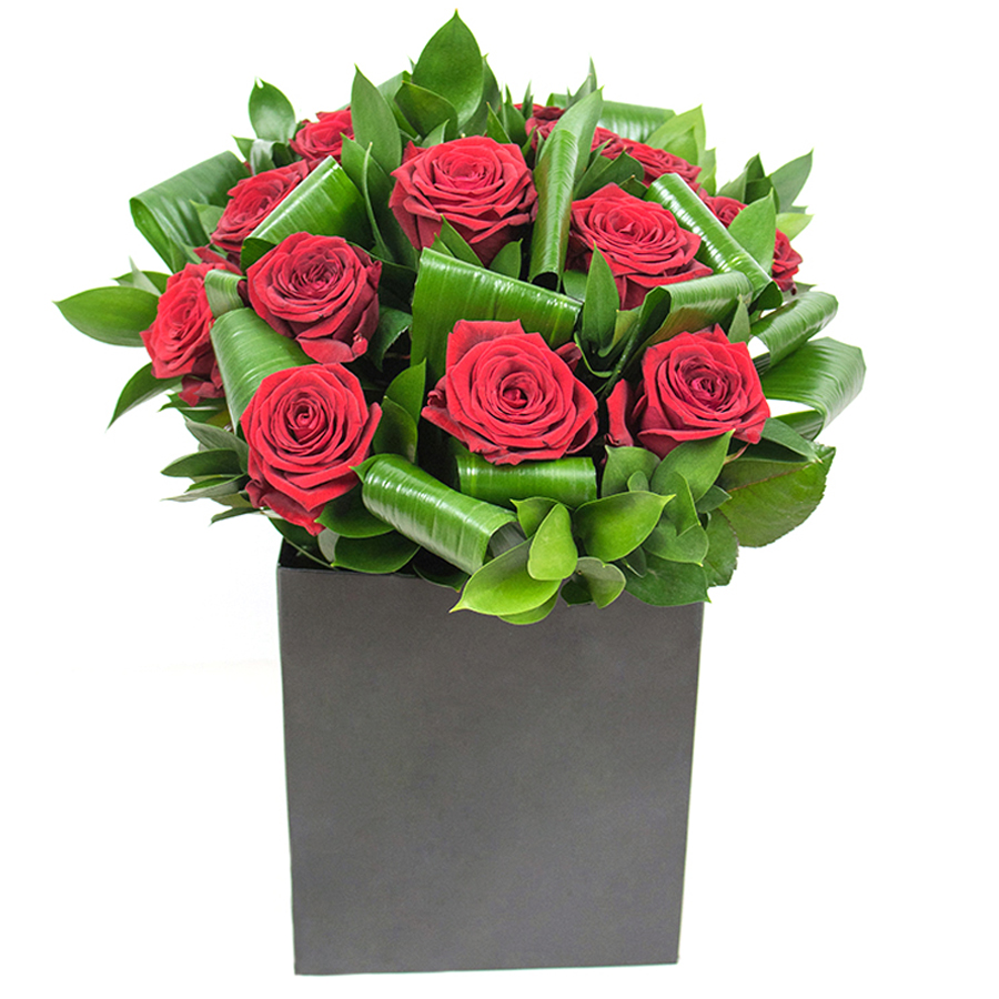 Absolutely stunning arrangement! The roses are vibrant and the aspidistra leaves add a lovely texture. Delivered on time and fresh.